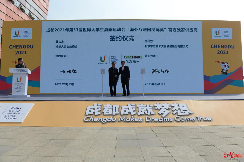 值得关注的是,在启动仪式上,成都大运会执委会与新一批官方赞助商成功签约。中国铁塔、北京东方嘉禾文化发展股份有限公司、成都德昌行物业服务有限公司、深圳市洲明科技股份有限公司四家企业分别成为成都大运会“应急电力保障类”官方独家供应商、“海外互联网视屏类”官方独家供应商、“物业服务类”官方供应商和“显示系统类”指定产品。
